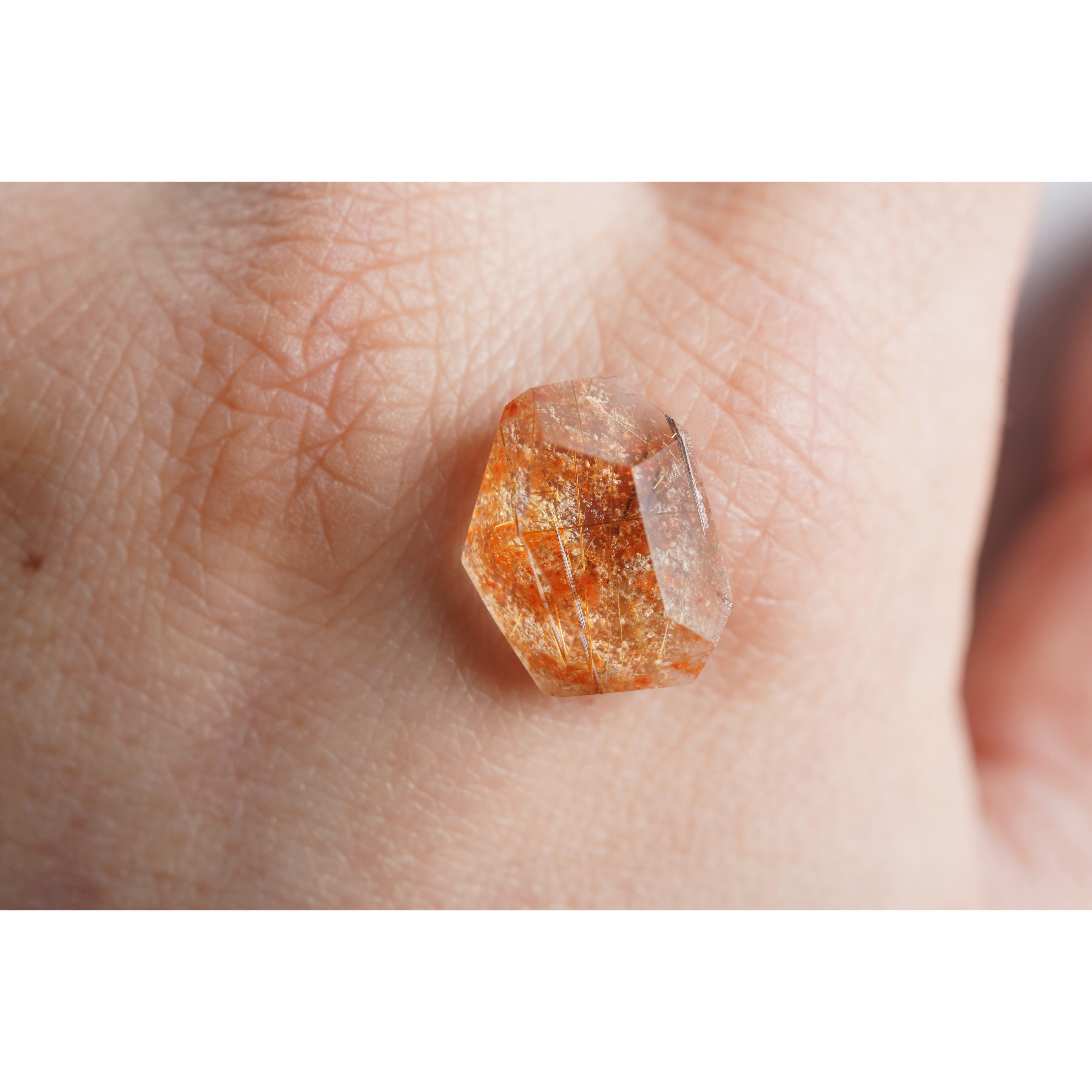 オレンジのクローライトとルチルが美しく共生する、このルース。