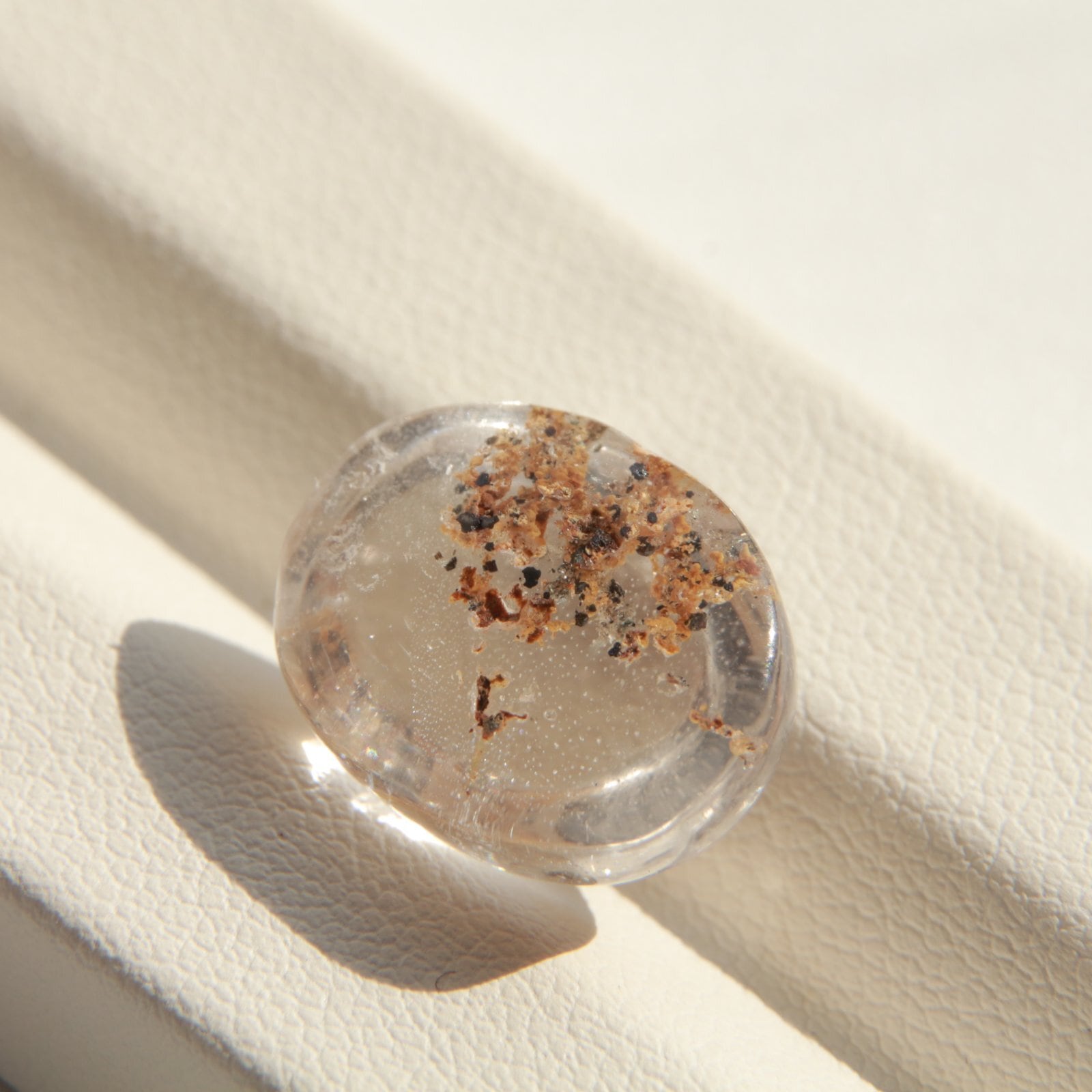 透明水晶の内部に、まるで庭園のような美しい内包物が広がる「ガーデンクォーツ」のカボションルースです。