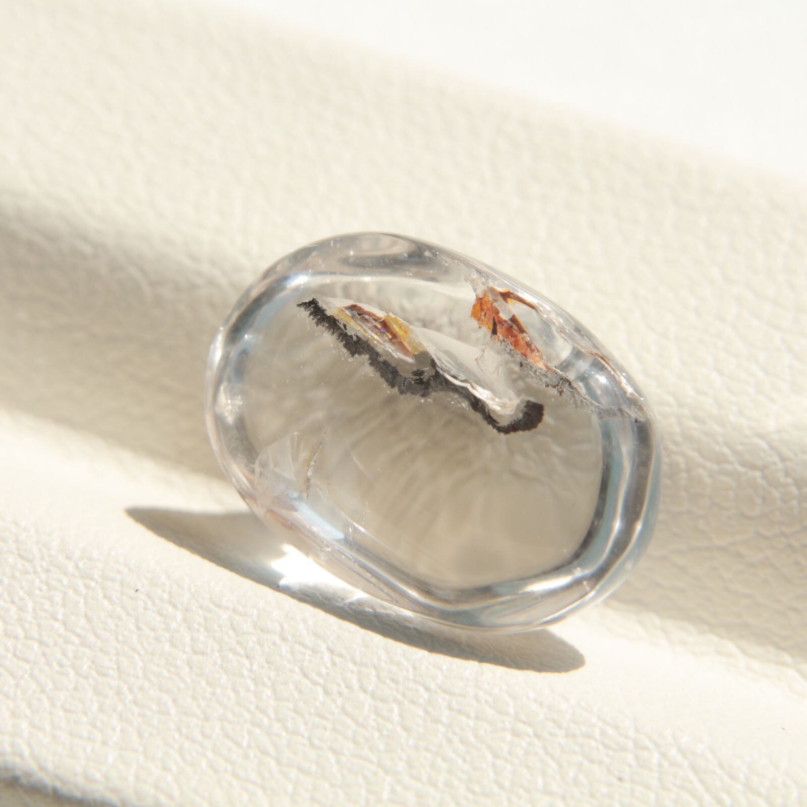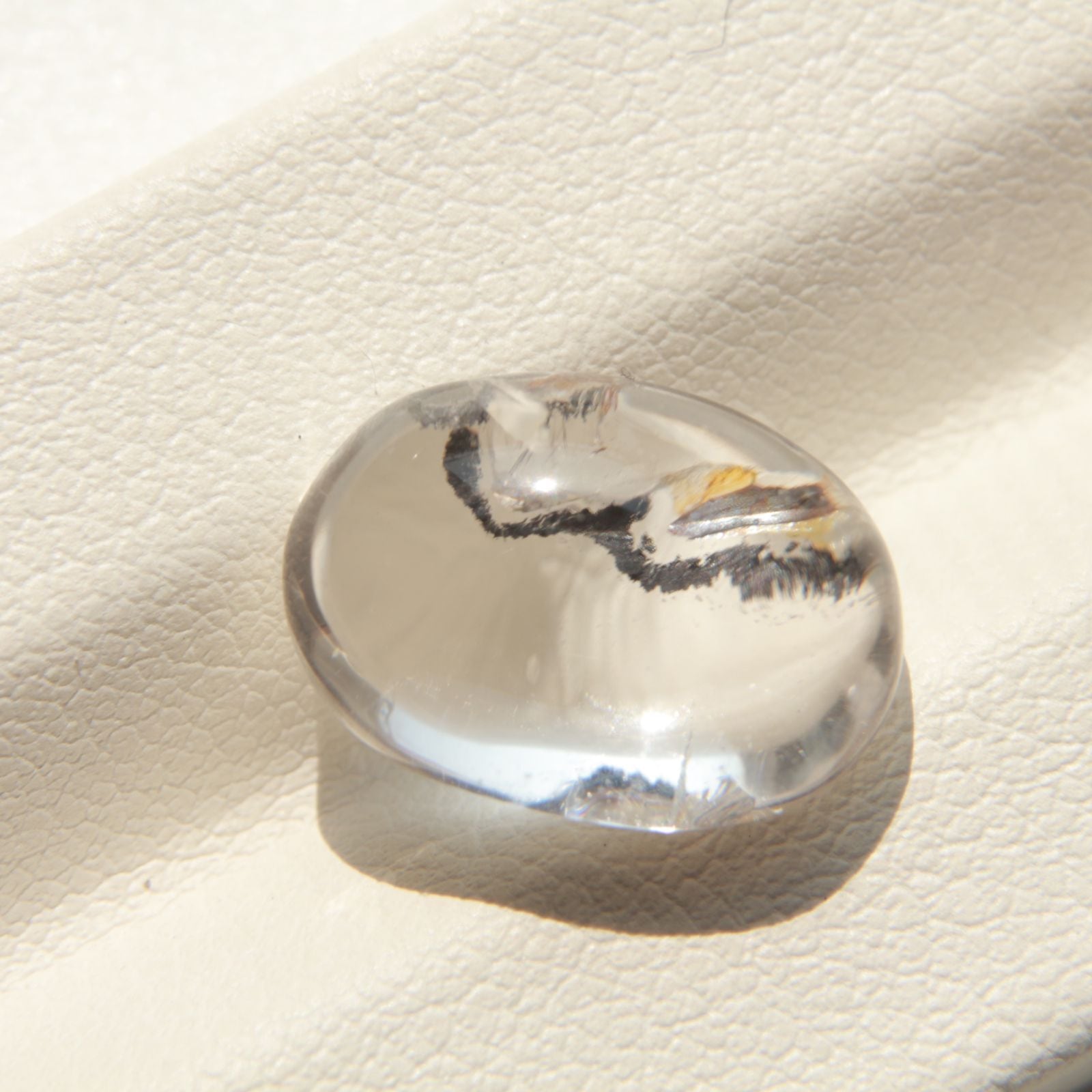 ドーム状のカボションカットにより、内包物の立体感と奥行きが際立ち、見る角度によって異なる表情を楽しめるのも魅力のひとつ。自然が長い年月をかけて生み出した、唯一無二の一点物です。