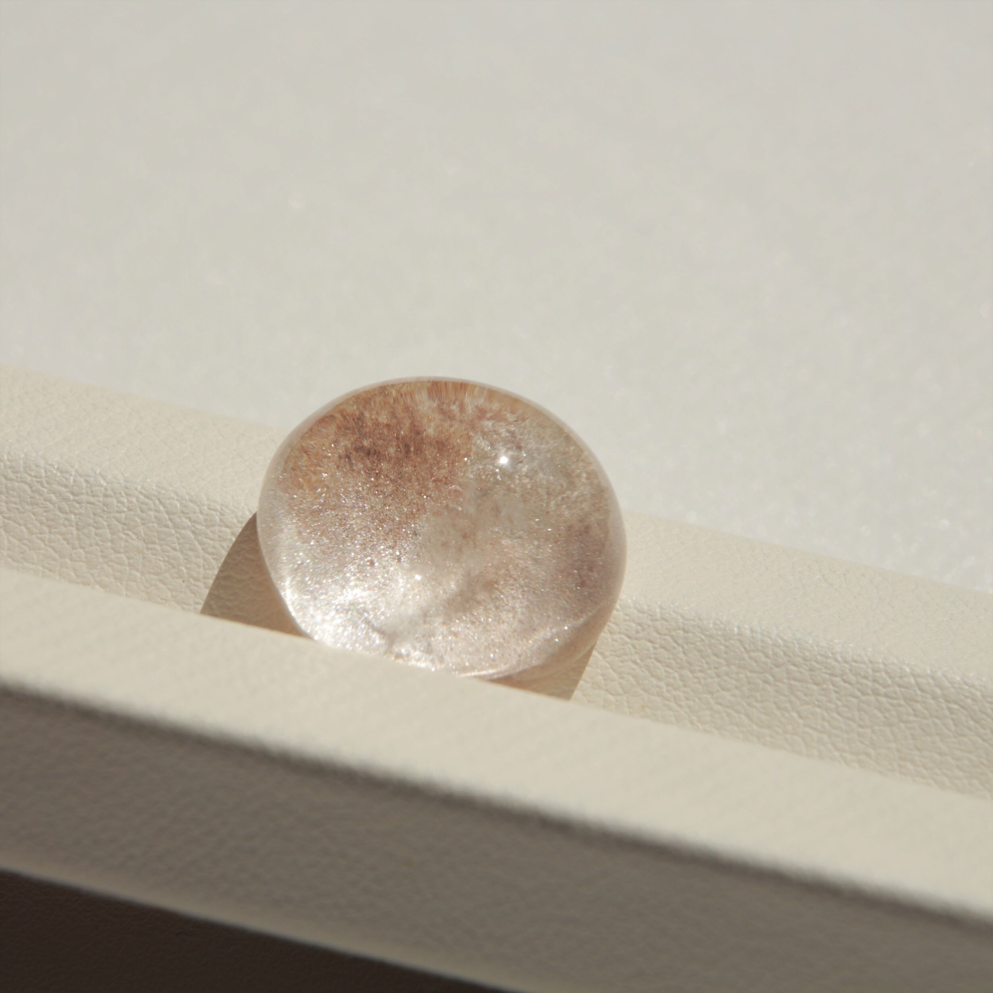 カボションカットによるなめらかなフォルムが光をやさしく取り込み、角度によって異なるニュアンスを見せてくれるのも魅力。シンプルで上品な色味は、アクセサリー加工にも取り入れやすく、幅広いデザインに馴染みます。