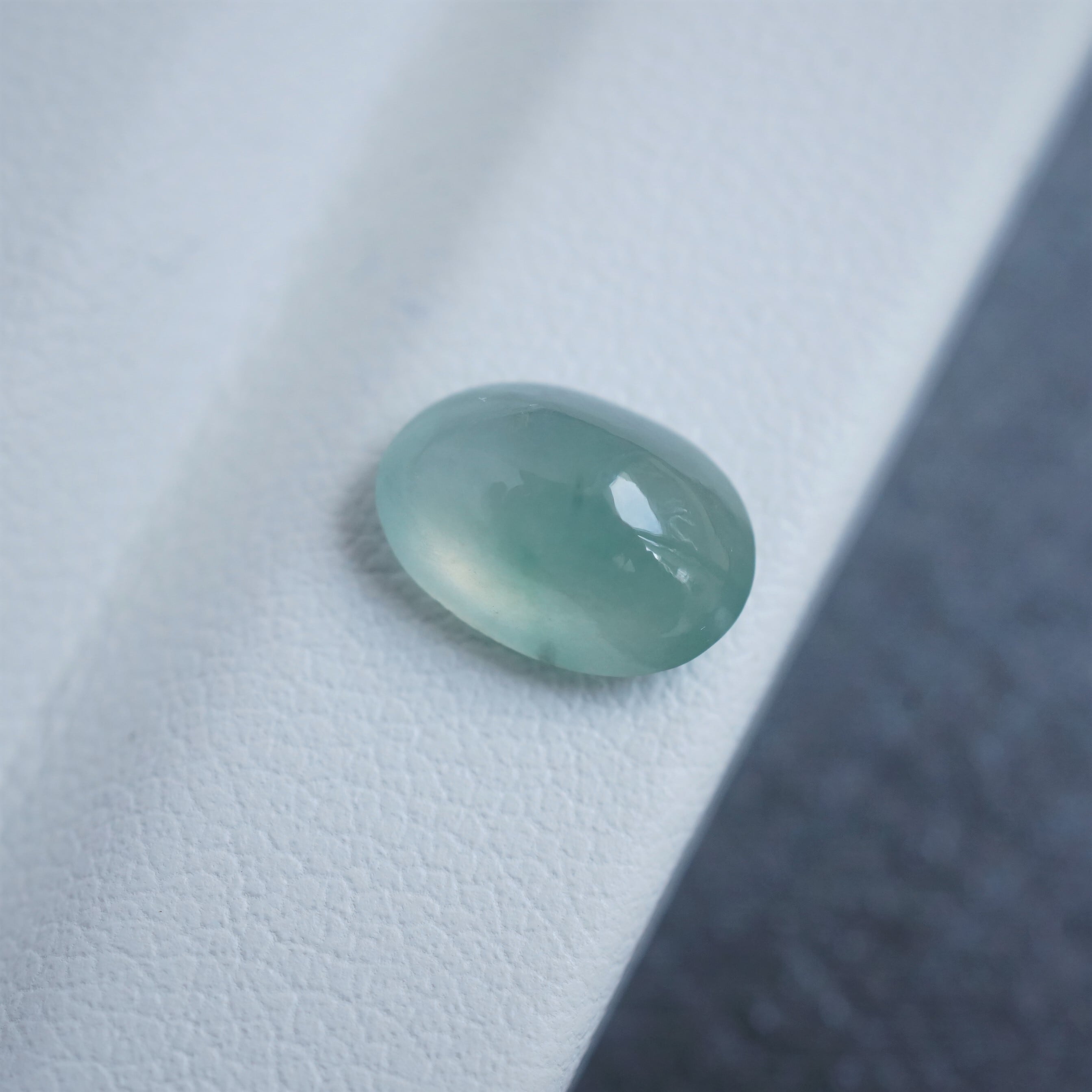 つるりとしたカボションカットにより、翡翠特有のなめらかな艶と透明感をお楽しみいただけます。