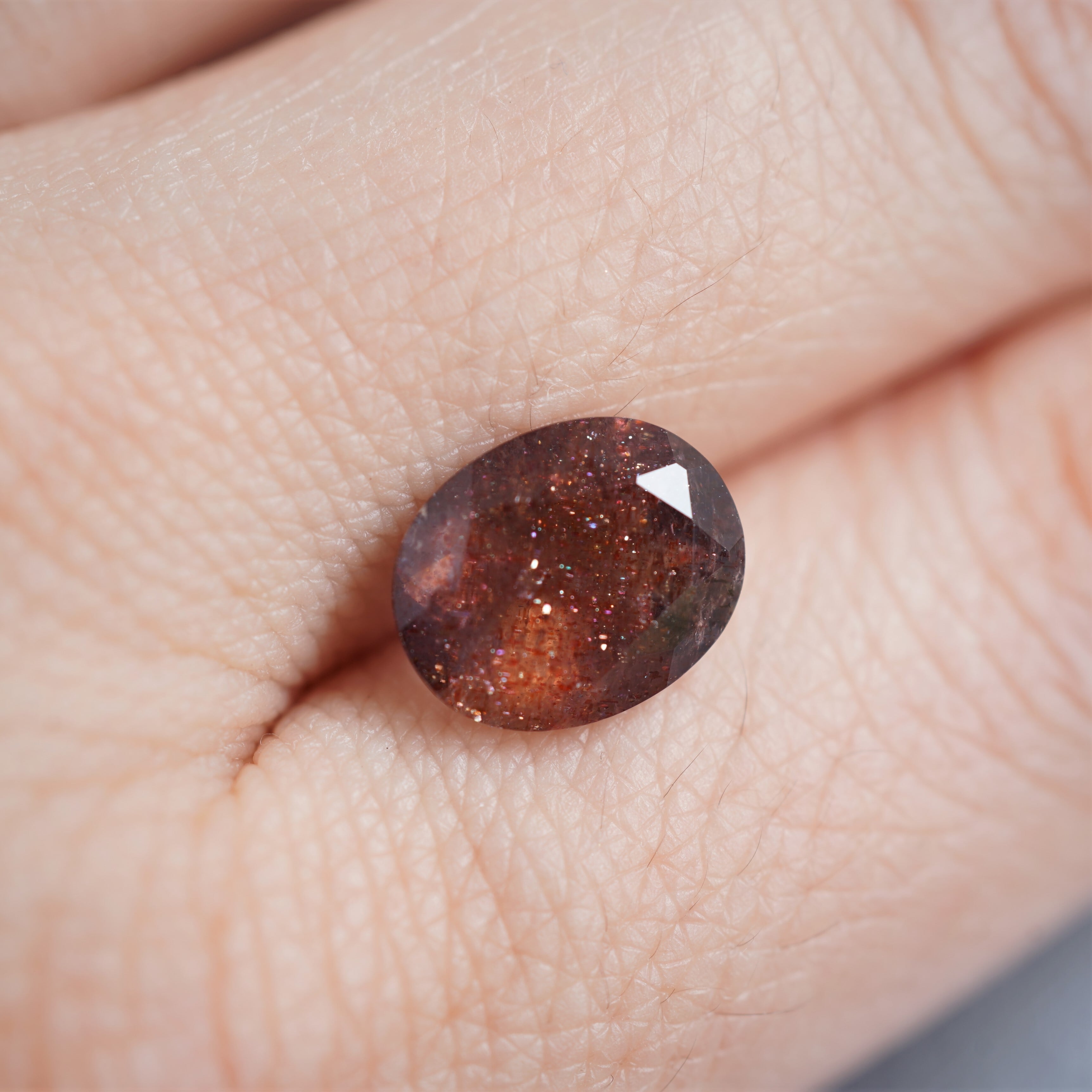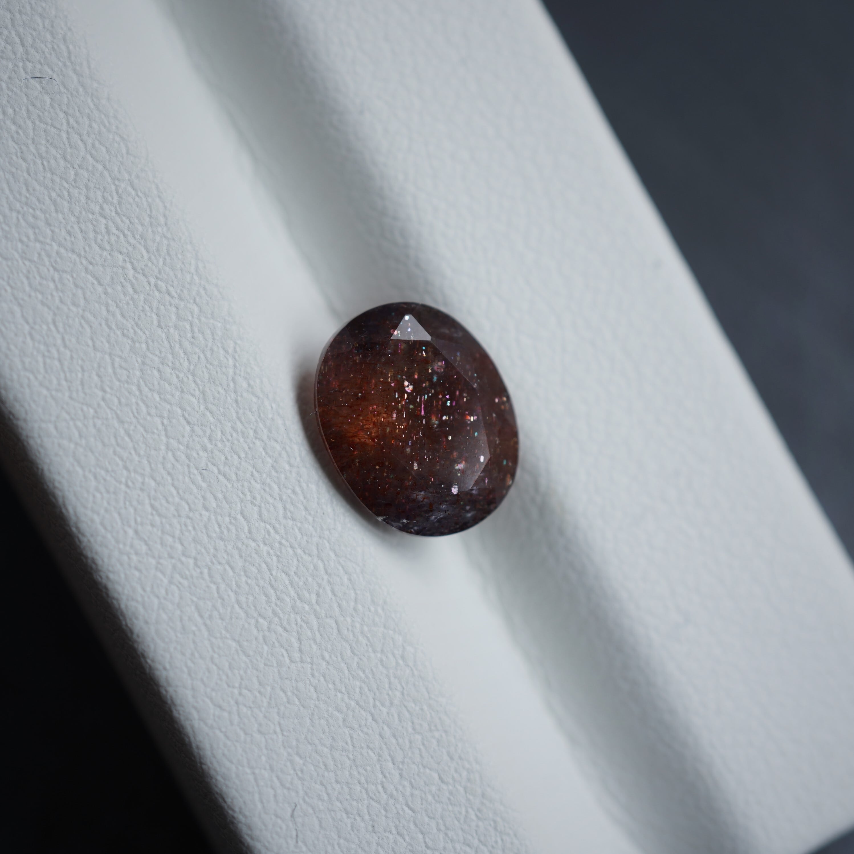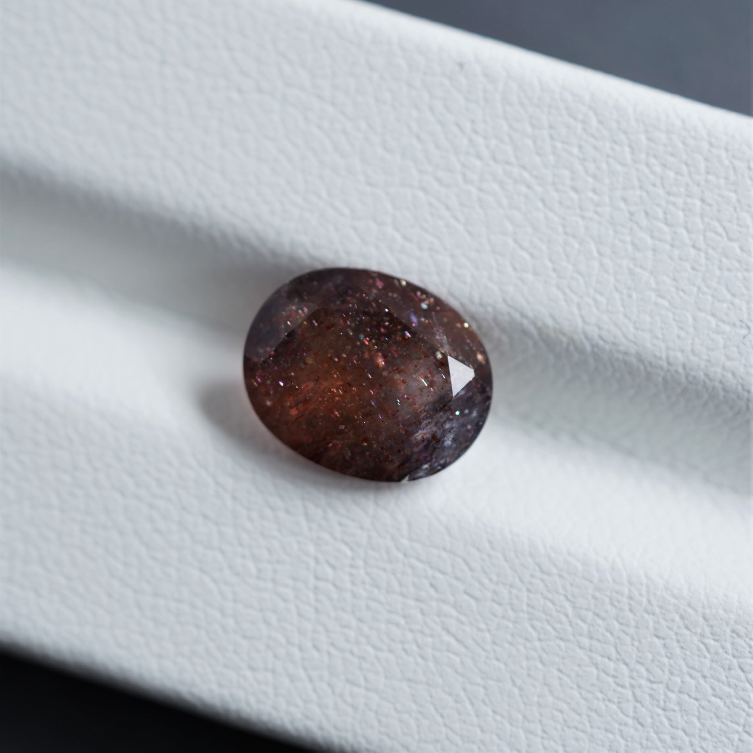 内包物は主にレピドクロサイトだといわれています。ラメのような光学効果が見られ、赤い斑点のような模様が見えるものが「ブラッドショット」と呼ばれています。夜空の魅力を詰め込んだような宝石です。