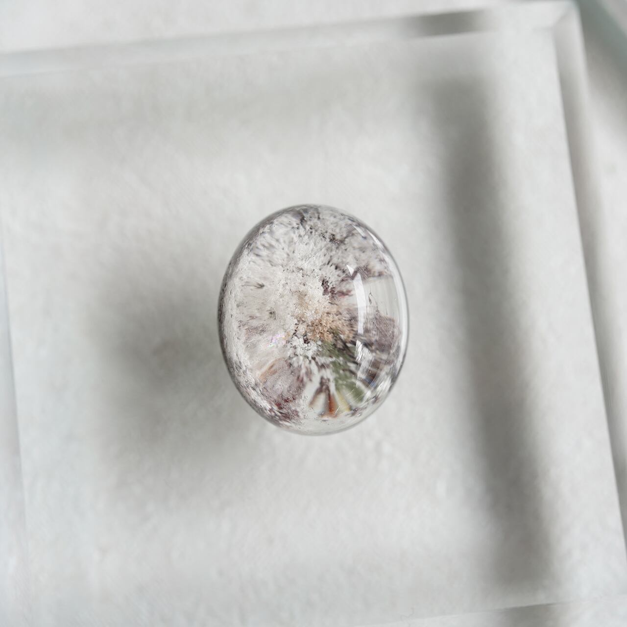 クォーツの中にある内包物が、木や草花、雪といった自然の風景を思わせるため、庭を意味するガーデンクォーツという呼び名がつきました。和名は「庭園水晶」とも呼ばれます。